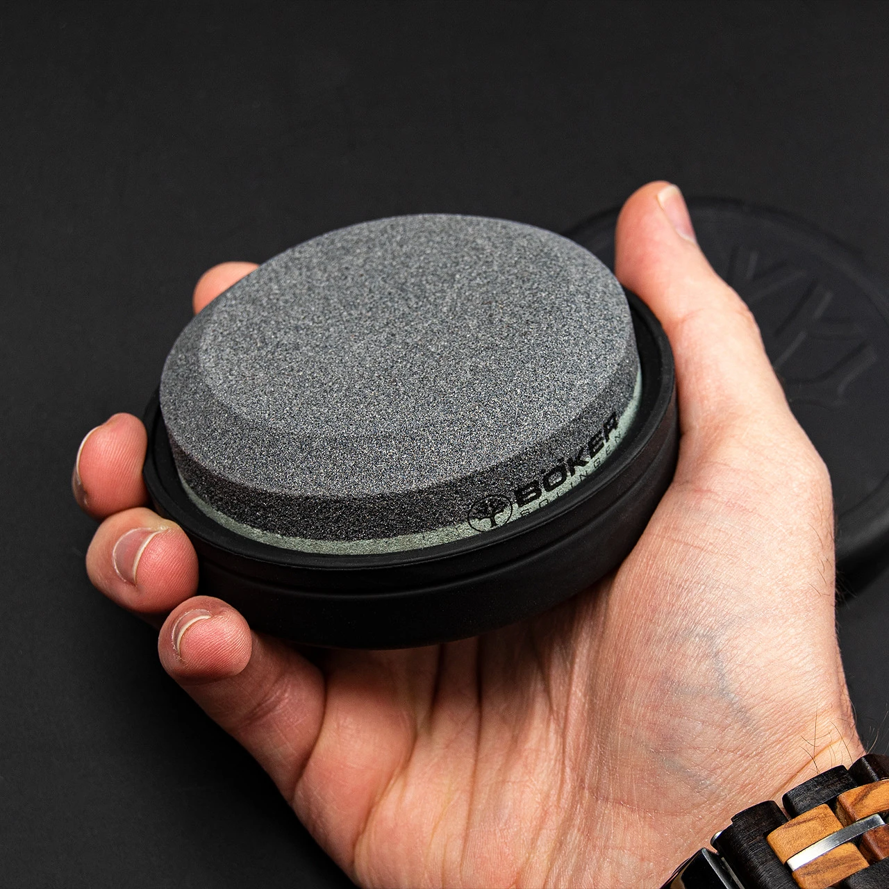 The Boker Puck Corundum sharpener is a combination sanding puck consisting of the tried and tested abrasive Corundum in both 200 grits and 600 grits. Both sides are suitable for wet and dry sanding and each has an effective working surface of 6 cm.