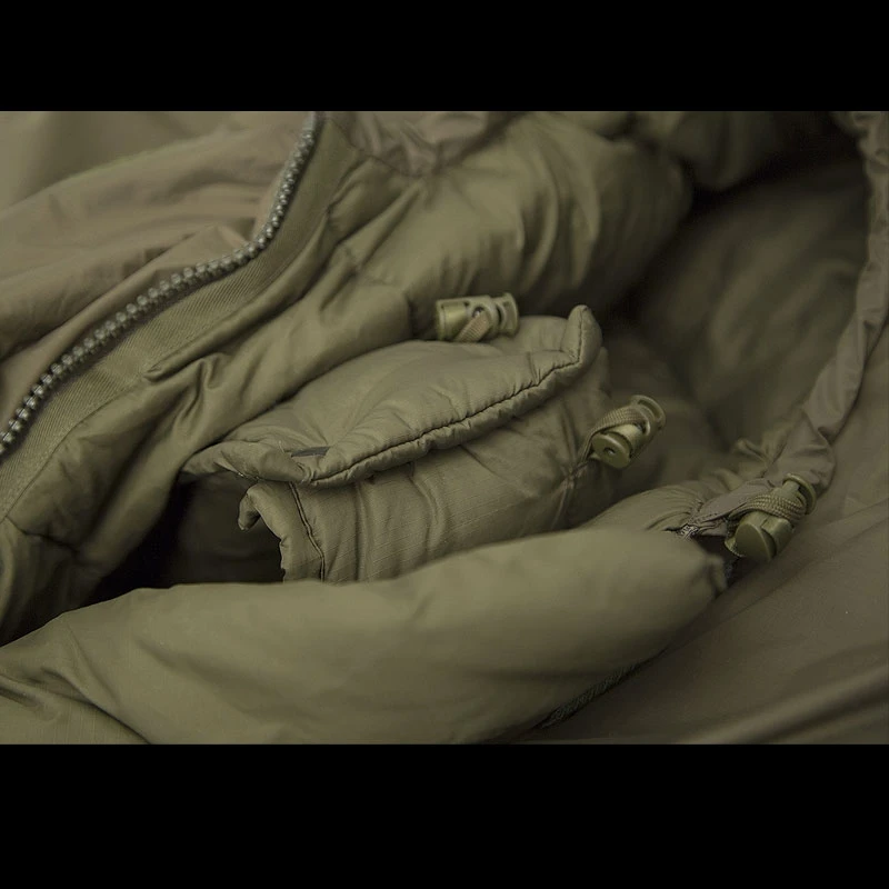 - All Carinthia military sleeping bags are equipped with a two way zipper. The glider on the top does not snag, allowing a quick step out if necessary (in case of alert for example). The glider on the down side does stick and can be opened for ventilation.
