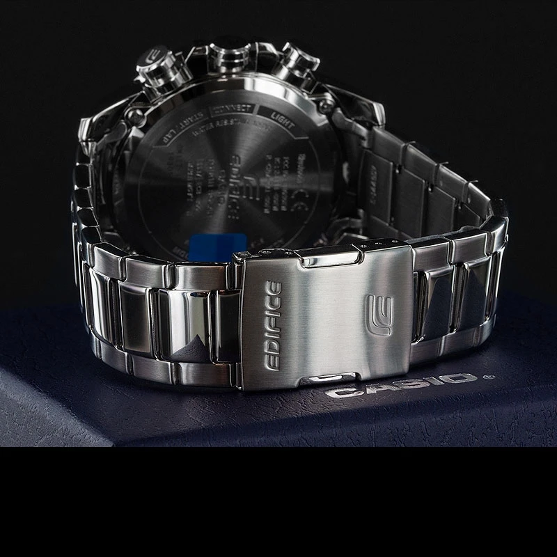 Introducing the ECB-800 Series of EDIFICE metal chronograph models with advanced features and functions that allow linking with your smartphone. These new models provide true chronograph capabilities and were developed based on feedback from members of a professional automotive racing team. In addition to Phone Linking, which ensures accurate timekeeping and simplified operation, these models also come with advanced stopwatch functions.