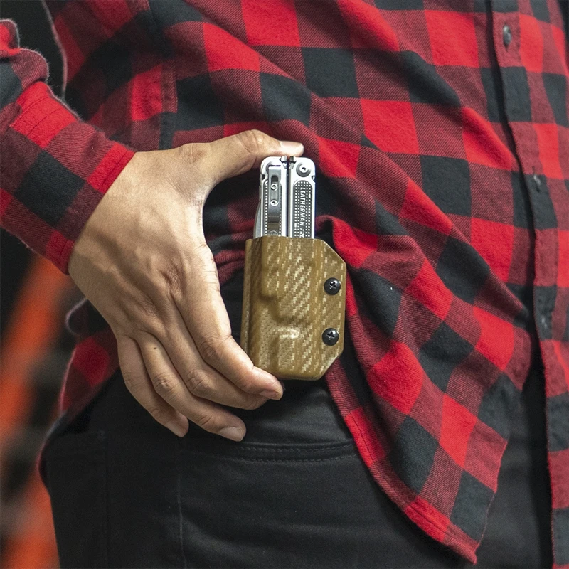 So you’ve got your new Leatherman Free P2 but you need something to, not only hold it securely to your belt, but keep it protected and stored safely too. The answer is the Clip and Carry Kydex sheath for the Leatherman Free P2.