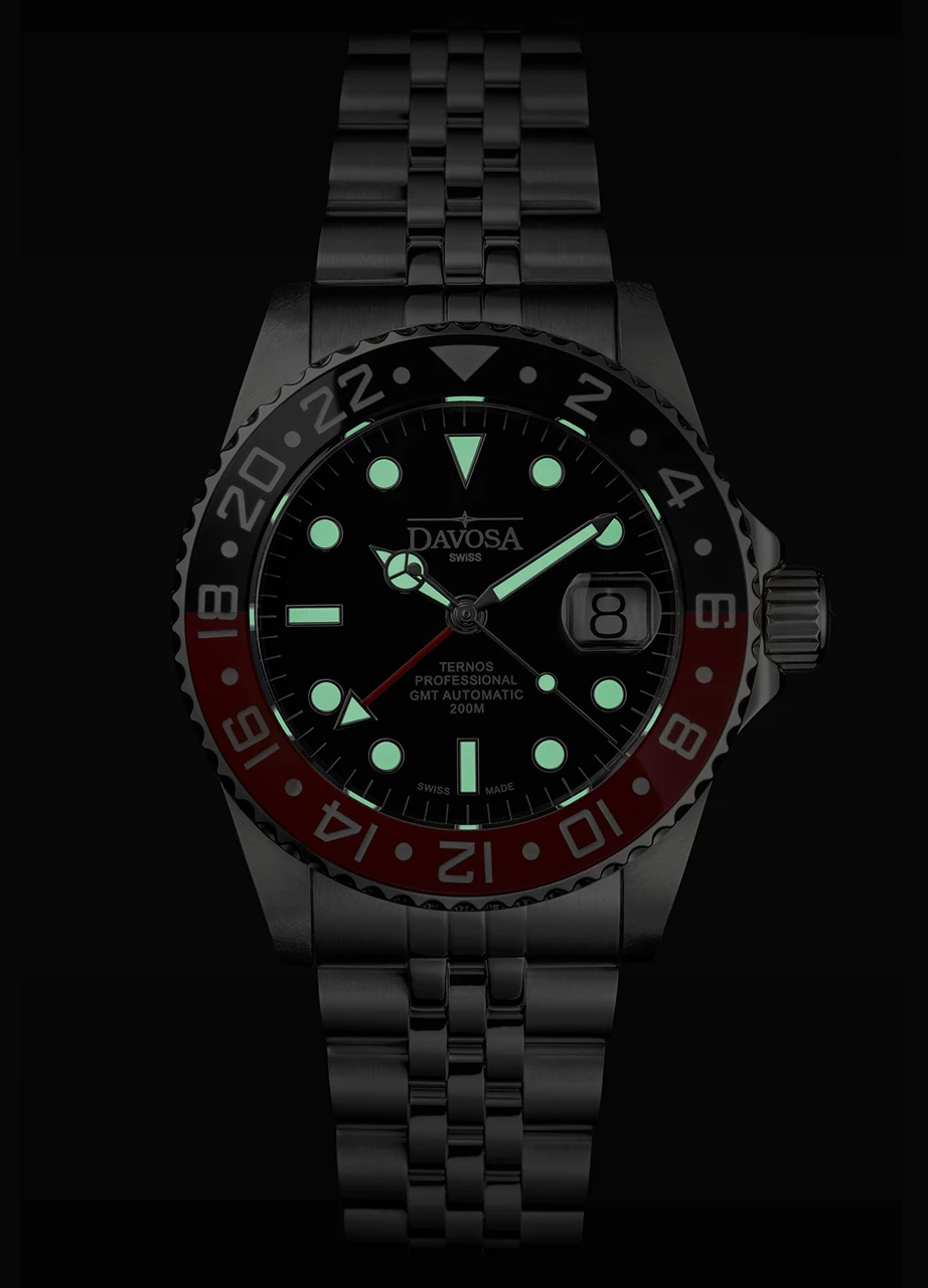 The ability to display a second time zone in addition to your current time, also known as a GMT function, has become one of the most popular additional functions of mechanical wristwatches in recent years. It was therefore a logical move for us to equip its successful Davosa Ternos Professional series with this sought-after function.