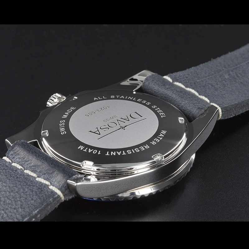 This timepiece is a tribute to the early times of professional diving watches with many historical references: the egg-shaped 10 ATM water resistant case, the typically curved crystal, printed Super-LumiNova indices and a bezel inlay made of aluminium.