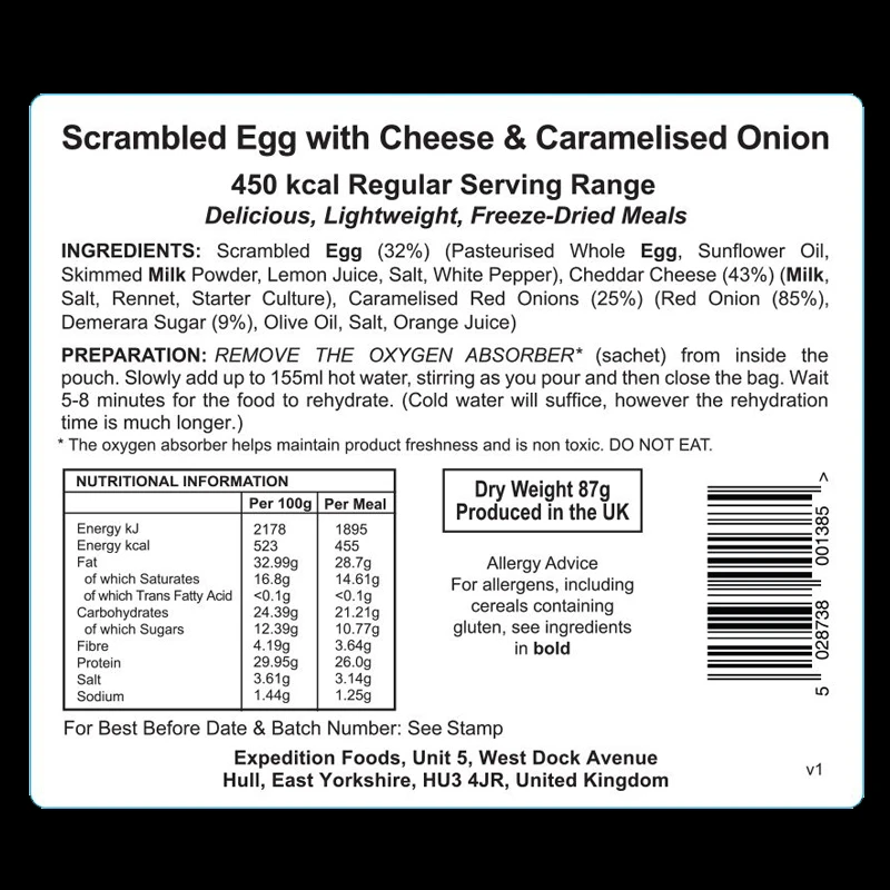- 1 x Scrambled Egg with Cheese & Caramelised Onion (450kcal)
