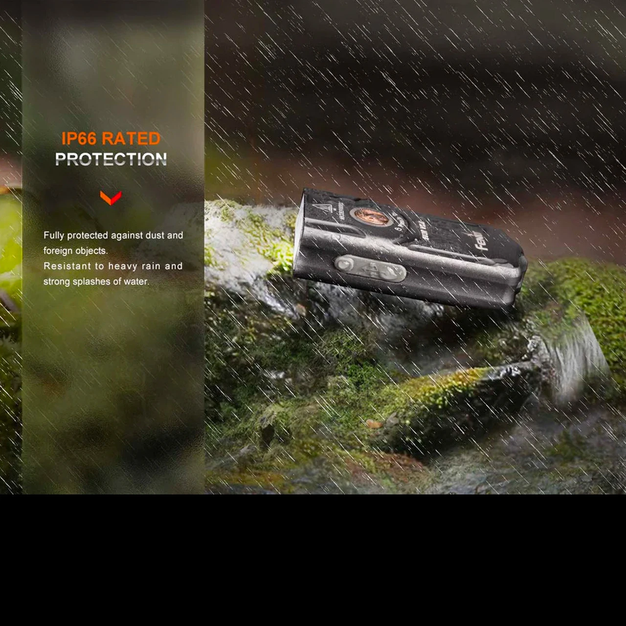 The Fenix E03R V2.0 keyring light has a maximum output of 500 lumens from the white LED and is powered by a built-in li-polymer battery which is rechargeable via the USB Type-C port on the side.
