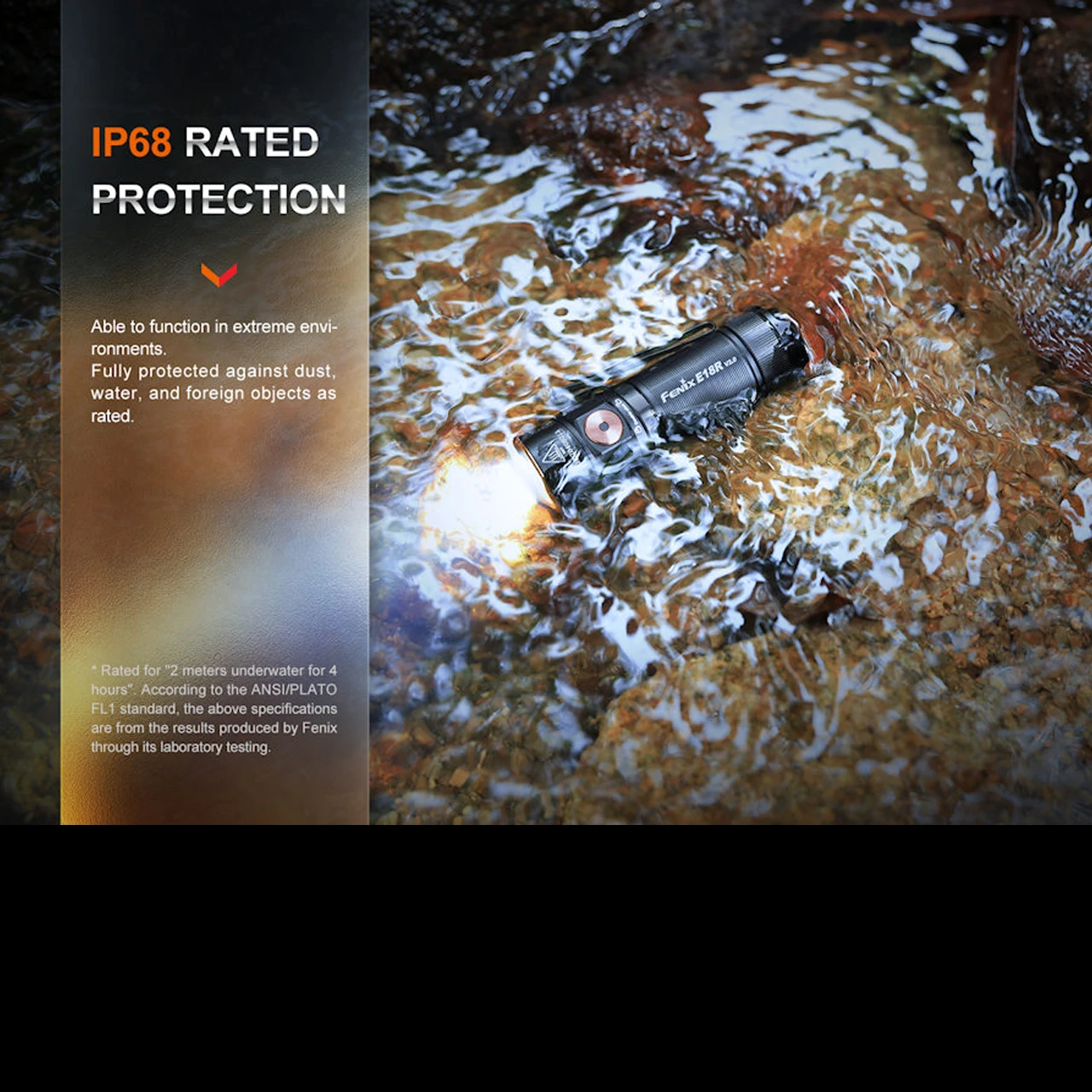 Fenix E18R V2.0 compact rechargeable LED torch updates the popular original with an increase from 750 to a stunning 1200 lumen maximum output. Big torch burst output from a tiny frame! Small, mighty and versatile with its choice of massive output or impressive 200 hour emergency run time, this little Fenix LED torch is ideal for every day carry, emergency preparedness and more.