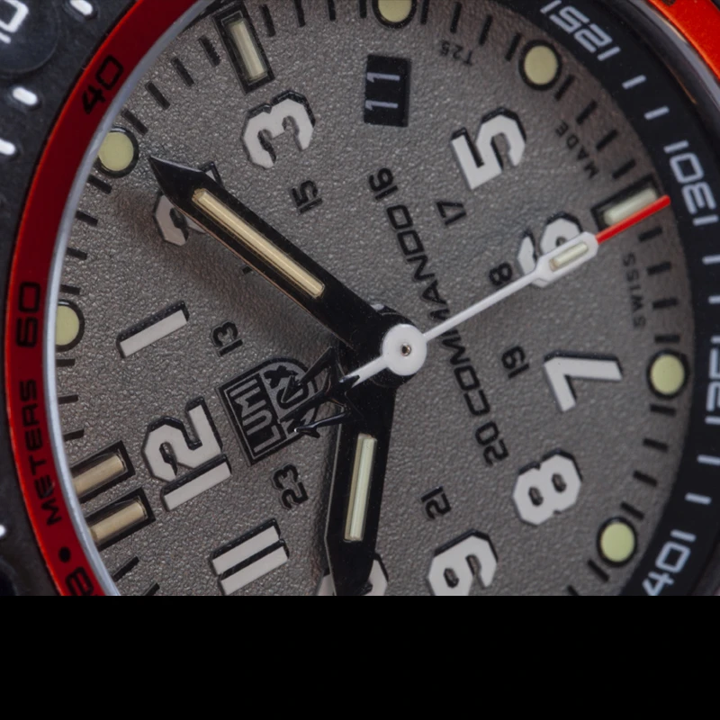 The Luminox Commando Frogman 3301 is aimed at all military, police and commercial divers, as well as outdoor enthusiasts, as it’s rugged enough to withstand just about anything yet at 46 mm, it is wearable in any situation. The uni-directional “Dive Time” bezel of the Commando Frogman is special.