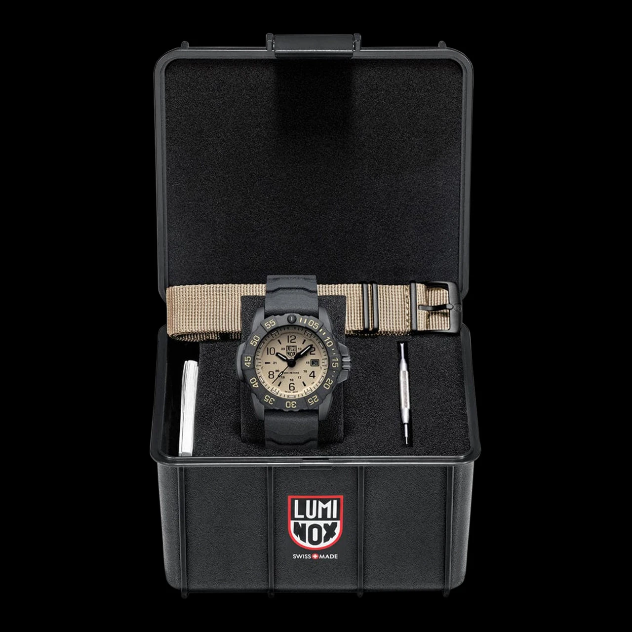 The Luminox Navy SEAL Foundation watch combines durability with purpose. With the strap set, the watch provides versatility and functionality with two options rubber or nylon. The 45mm case in steel with its sand-colored dial and CARBONOX bezel makes for a handsome timepiece that reminds us of the call to duty every Navy SEAL answers.Â