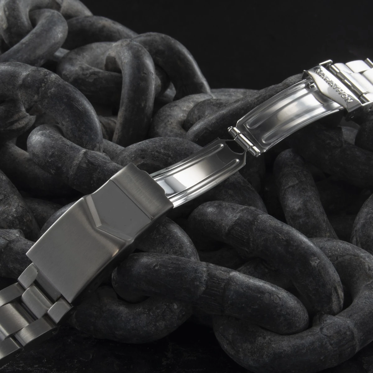Adjust the bracelet length using the five micro-adjustments on the signed clasp and by removing up to six links. The solid end links are designed to perfectly fit Marathon watches with 18mm pin-gaps.