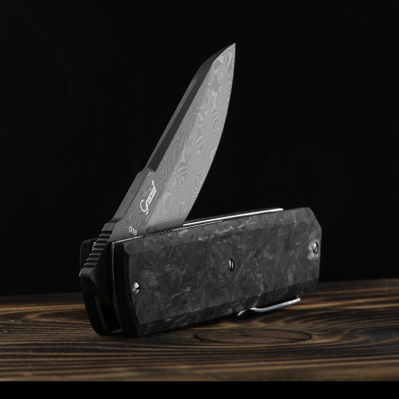 Maserin Silver 410 Fat Carbon Damascus Folding Knife