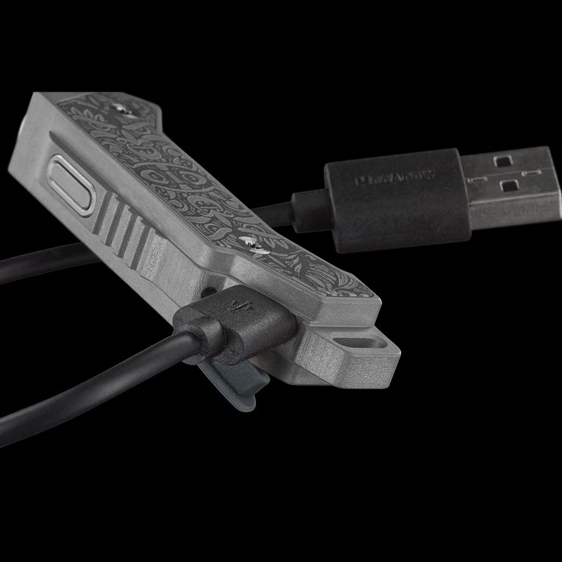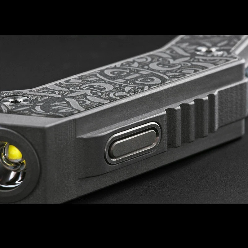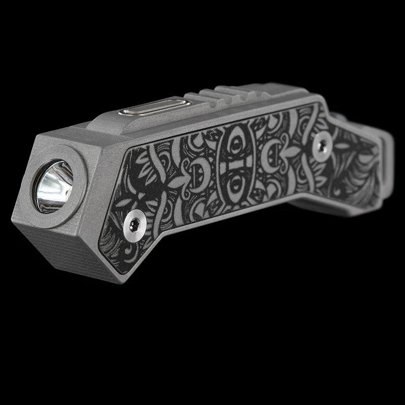 The MecArmy FL02 Lucky Monster is a keychain/pocket light of amazing quality. The body is TC4 Titanium with an intricately etched design on both sides of the body of the flashlight. This little beauty will certainly get heads turning and tongues wagging.