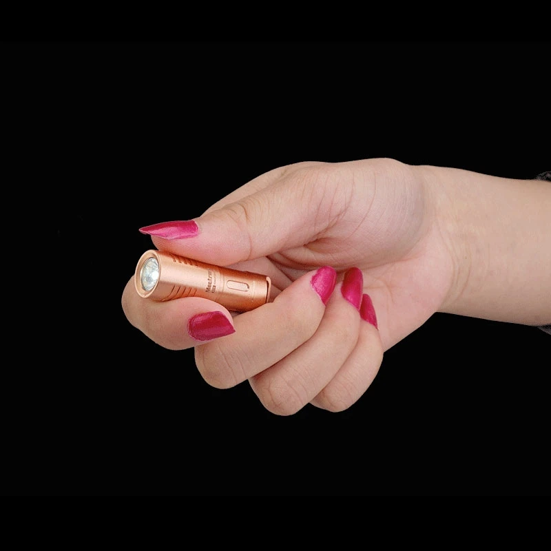 It is crafted from copper with a real feeling of solidity in your hand. This tiny torch is just 4.6cm long – about the same size as the blade on your car key. It is activated by a twist of the head. As for batteries, you can forget about buying those. It’s supplied with a 10180 Li-ion cell which can be recharged in situ.