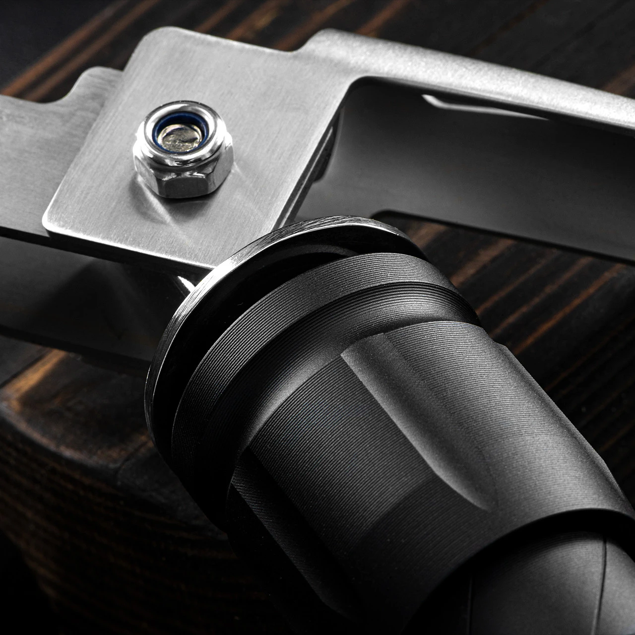 Supplied in a sturdy nylon pouch, this tool folds to a very compact form for easy transport, and is easily deployed. The threaded, knurled collar locks the handle open, and the head into place. The head can be used as the spade alone, pick alone or with the spade and pick both deployed together.