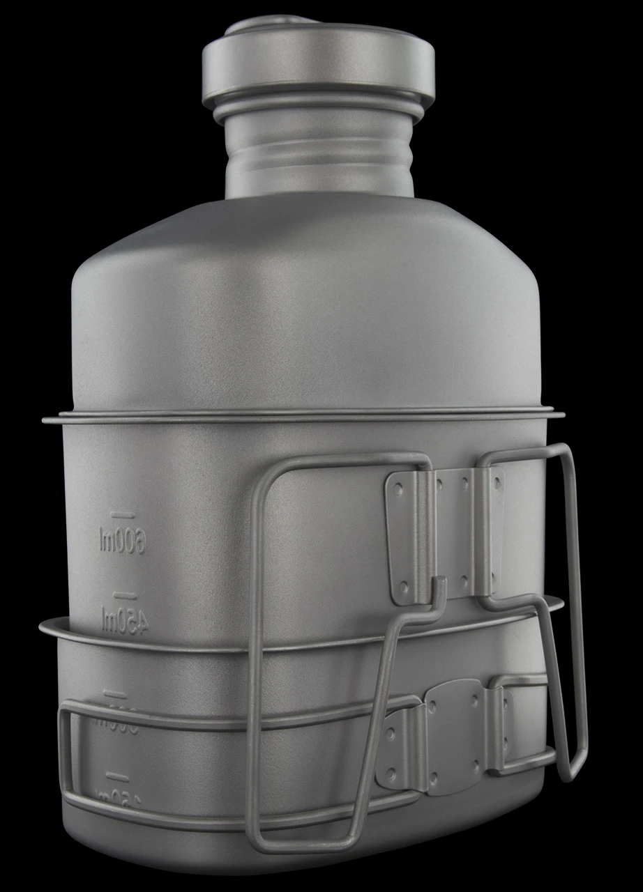 Inspired by the famous canteen sets of the U.S. Military, the Pathfinder Titanium Canteen Cooking Set can be placed directly into the fire, with the cap removed. The wide mouth of the canteen makes for easy filling and pouring. A traditional set includes a canteen, cup and lid, however this set also includes a third container that can be used as a bowl, cook pan or skillet.