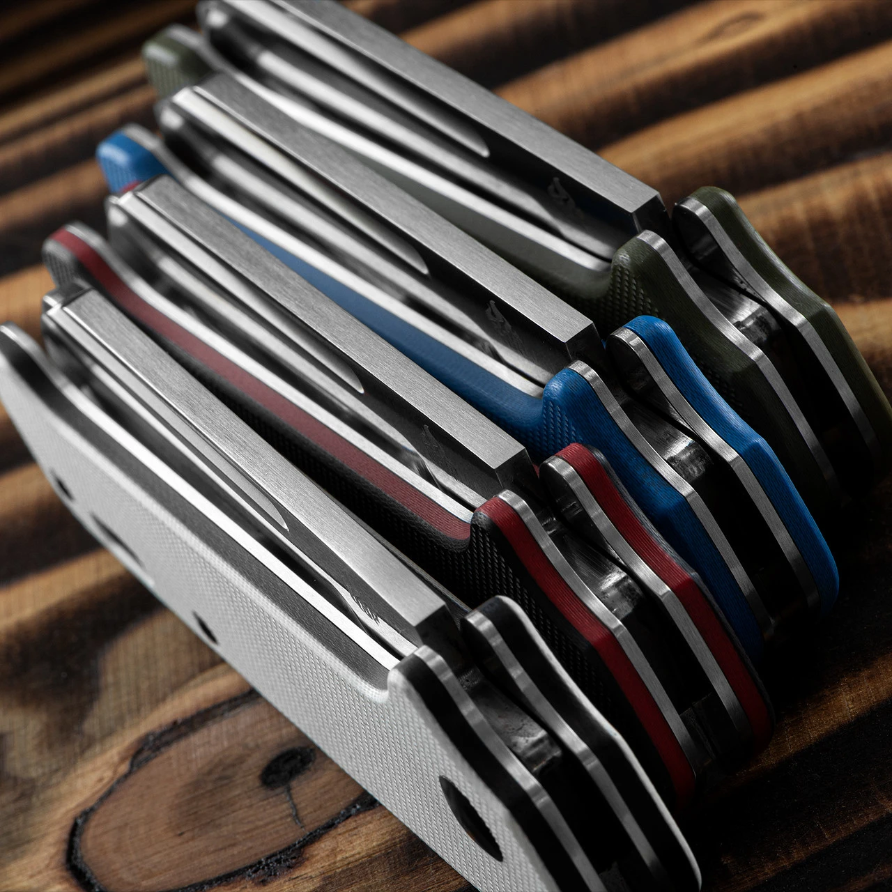 The handle is made from G10 with attractive red liner on the black option and black liner on the white version. There is also a choice of blue or OD green G10. Accessorise your one with a lanyard and add a detachable thumb stud if you wish to enable one handed opening.