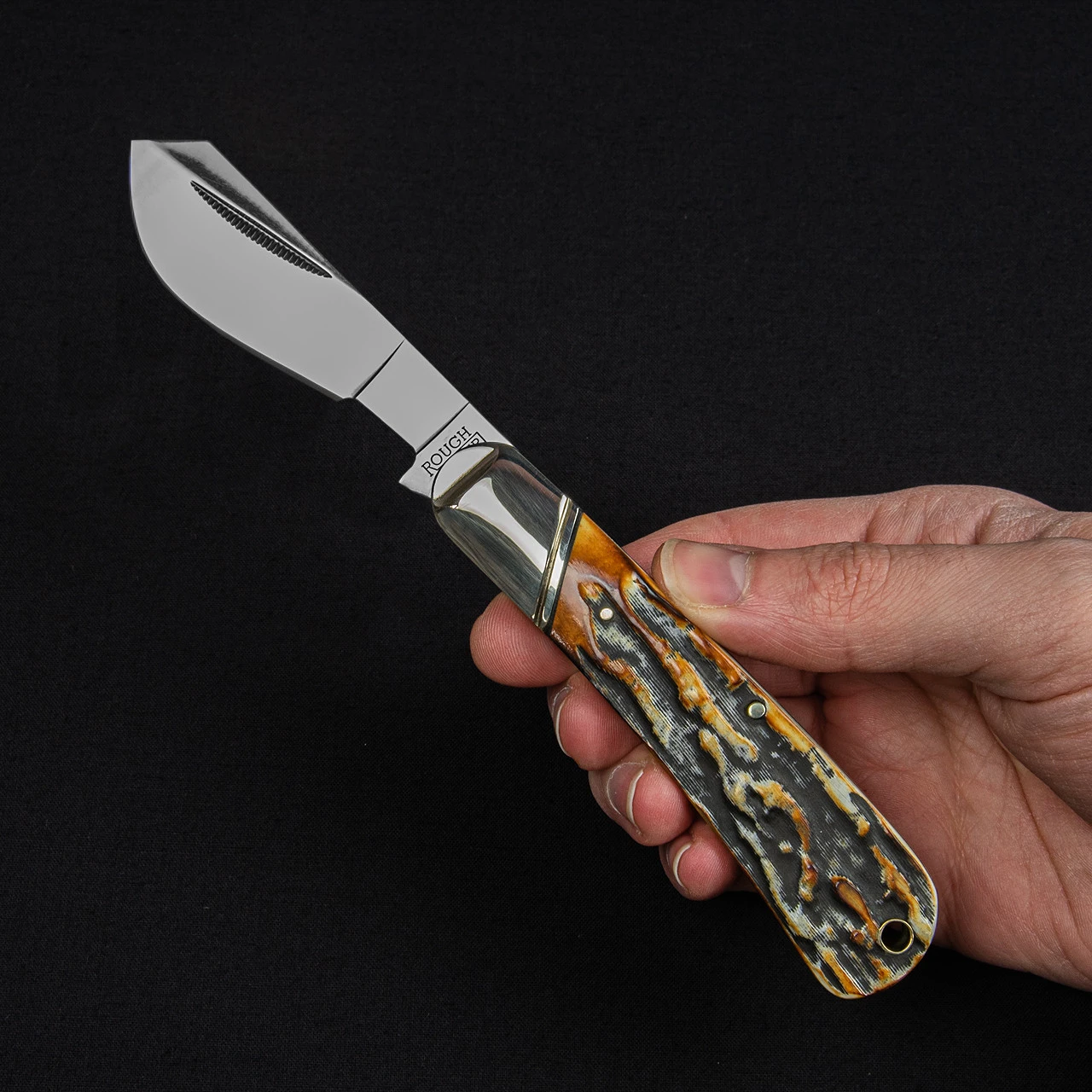Historically the cotton sampler knife was used by cotton buyers to judge the quality of cotton by rolling small pieces of material on the section before the blade. Still used in some areas of the States, the Rough Rider Cotton Sampler Micarta is a collectors’ piece.