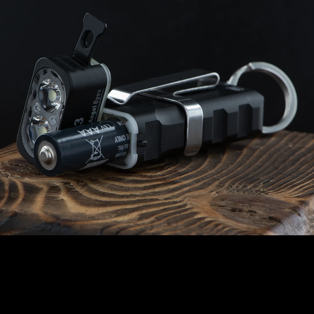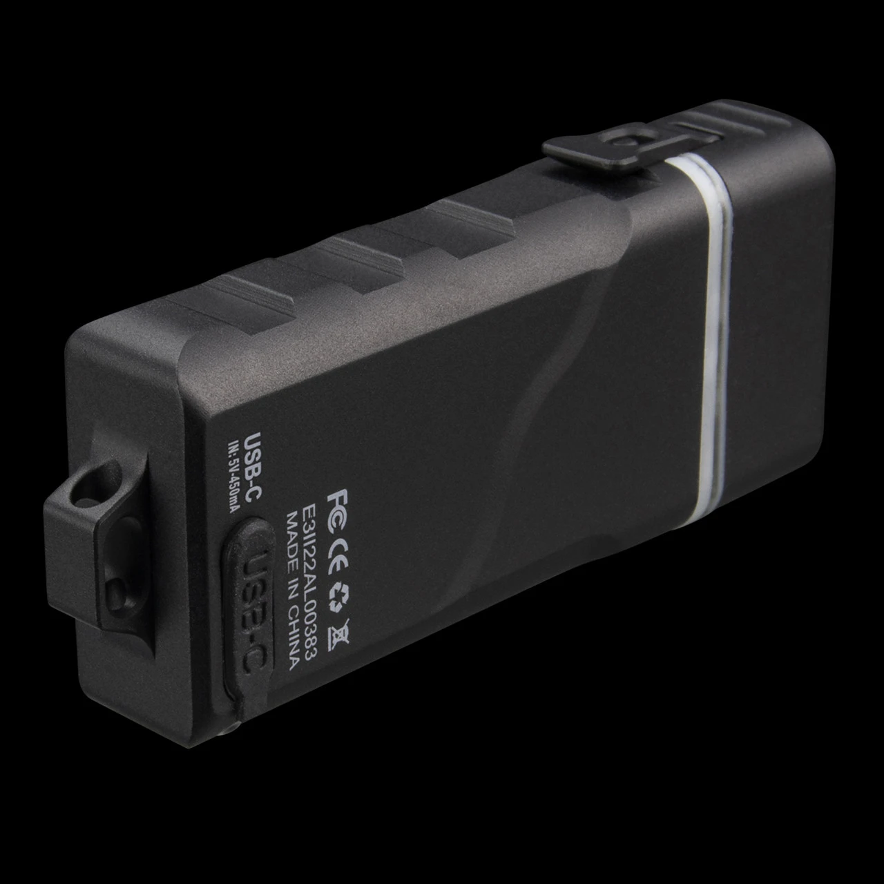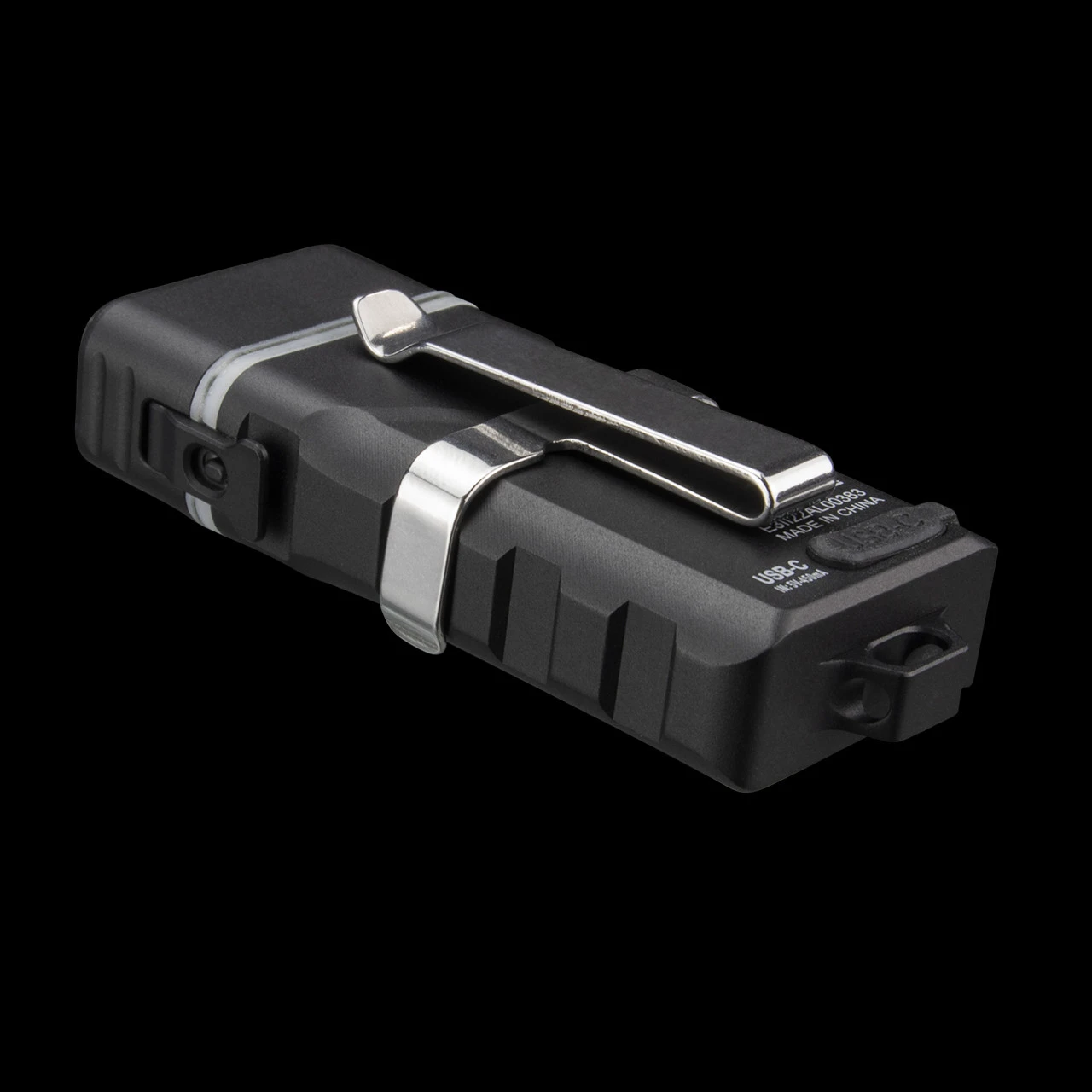 It’s powered by a built-in LiPo battery (charged via USB-C port), and a replaceable AAA battery, available separately. Unlock the light head to replace the AAA battery and lock it to use the AAA battery automatically.