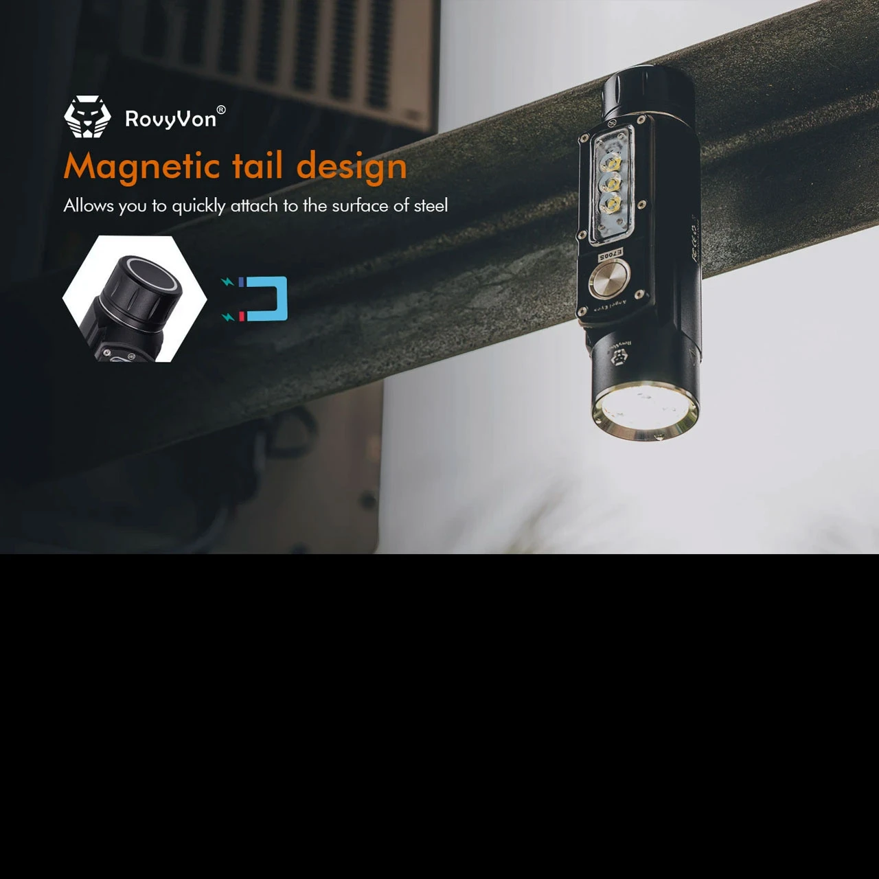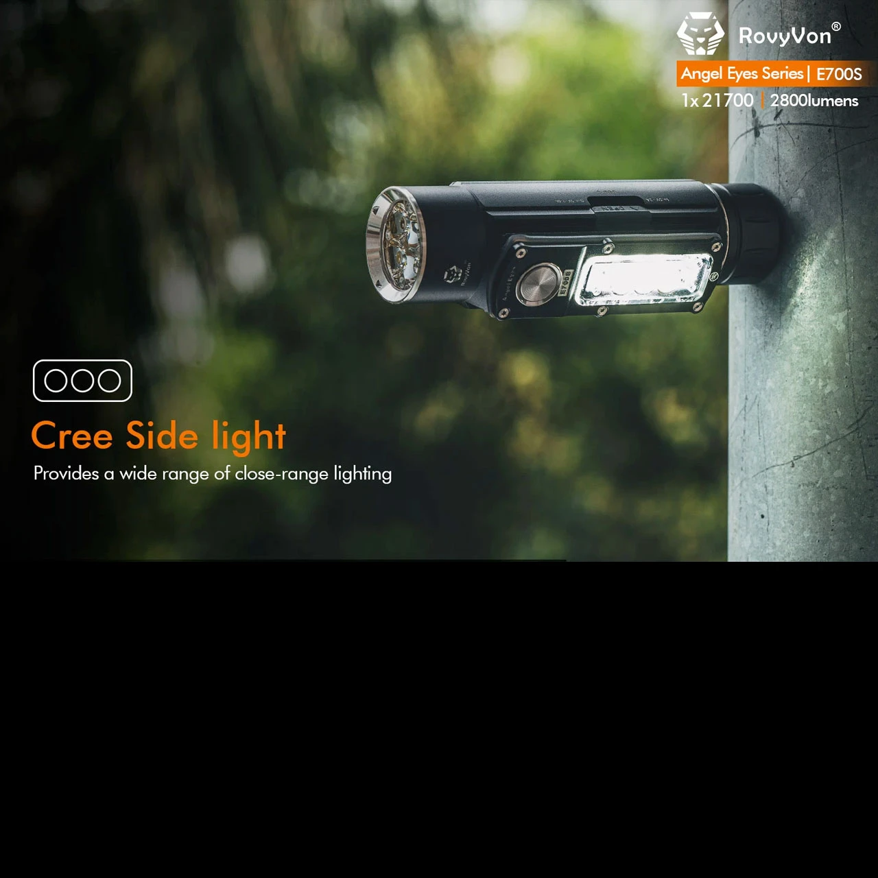 After the launch of Rovyvon’s very successful E700U, they collected feedback from the experts…Rovyvon users themselves. The result was the development of the latest member of the Angel Eyes family, the RovyVon Angel Eyes E700S. The main difference to the E700U are the emitters. The E700S uses three side-mounted CREE XP-G3 LEDs with a combined maximum output of 800 lumens. The intuitive interface lets you cycle between three brightness levels: Low (one LED on), Medium (two LEDs on), and High (all three on). On the front, the E700S sports four CREE XP-G3 LEDs with a maximum output of 2800 lumens. Also a shortcut triple-click activates the Strobe mode. The strong magnetic base is very handy when you need to keep your hands free and gives you a lot of options for deployment. The E700S was developed to be a serious tool with an infinite number of applications.