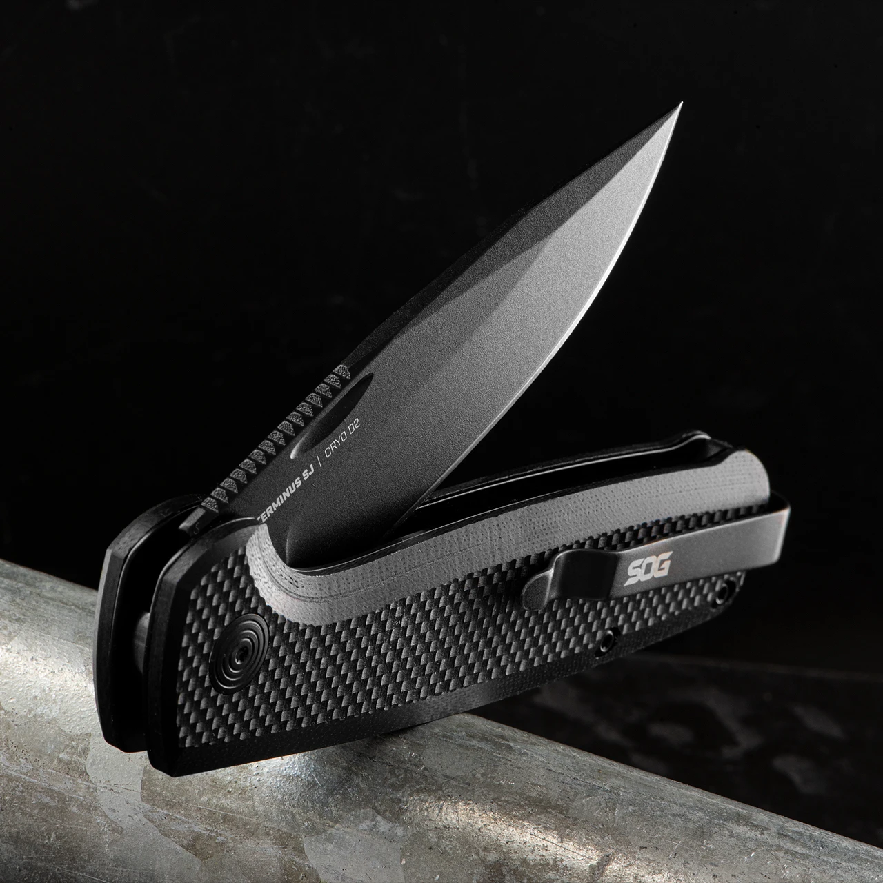 The SOG Terminus Slip Joint Blackout G10 is one of those knives that slips easily into your pocket. With CRYO D2 steel and a G10 handle, it’s fully ambidextrous and legal to carry almost anywhere and makes for a very tough knife for work or home.