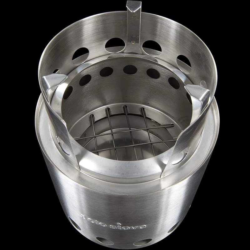 - Nichrome Wire Gate – Allows oxygen to be fed directly to embers from below. This helps to burn biofuel faster and hotter while allowing spent ash to fall out of the process.