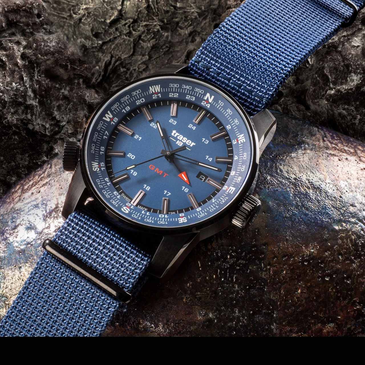 The Traser P68 Pathfinder GMT. Whether in the urban jungle, in barren deserts or travelling the seven seas, the Traser P68 Pathfinder GMT series shows you the time as well as the way. In five easy steps this outstanding timepiece can be transformed into a simple to use smooth functioning compass.