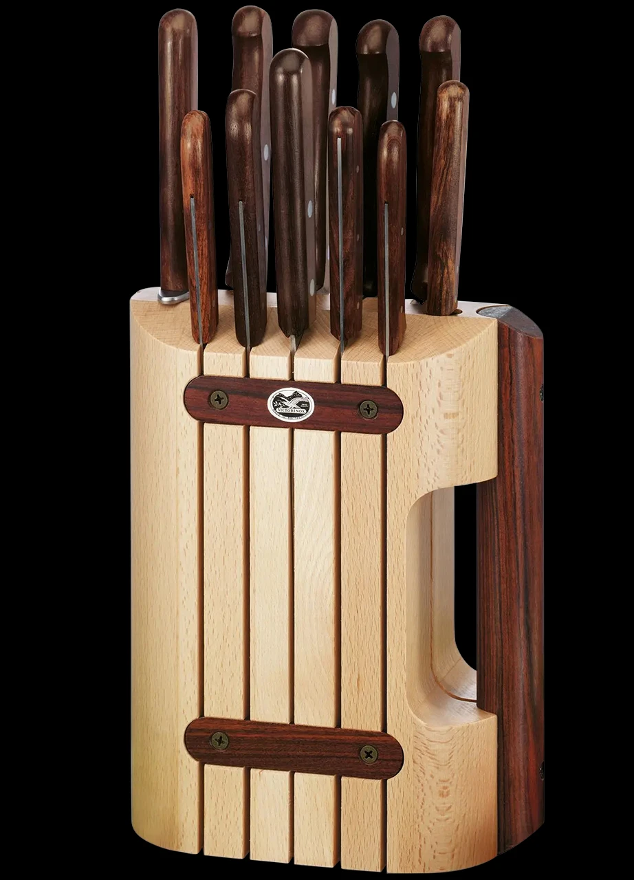 Every piece required in any kitchen is included in the Victorinox 11-piece Wood Cutlery Block, which combines the exceptional quality expected of Victorinox blades with the timeless elegance of natural wood.